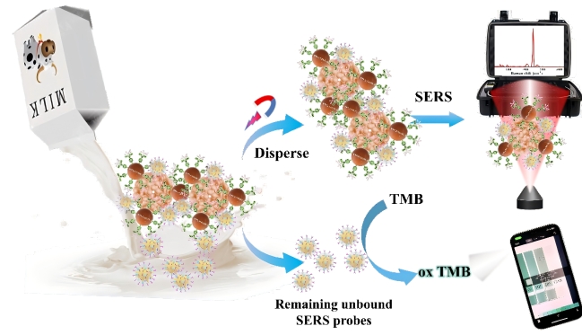 SERS比色双模传感器对金黄色葡萄球菌检测示意图