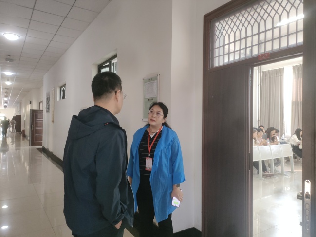 检查组与上课老师交流