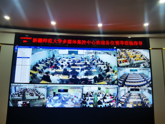 检查组在昆仑校区多媒体集控中心通过视频查看上课情况