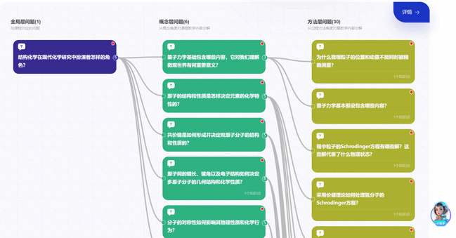 为加强学生对《结构化学》课程的深度理解,进而加深其对教材的深入解读,课程团队又进一步建设了问题图谱。以课程中6个概念层问题与30个方法层问题为导向,多方位帮助学生理解结构化学在现代化学中扮演的角色,形成对于课程内容与结构的独特认识。