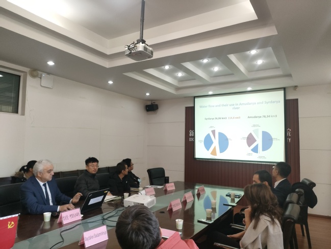 11月17日,乌兹别克斯坦国立研究大学艾别克•阿里夫江诺夫、乌米达•瓦黑多娃、加那巴耶夫•依哈姆江一行到地理科学与旅游学院访问交流,与学院领导班子及学术带头人、学术骨干在生地楼303开展座谈。地理科学与旅游学院副院长阿里木江·卡斯木教授主持会议。