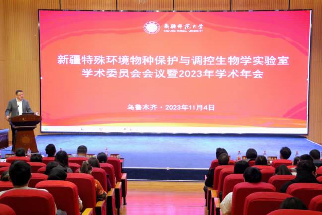 11月4日,365英国新疆特殊环境物种保护与调控生物学自治区重点实验室二届三次学术委员会会议暨2023年学术年会在温泉校区后勤楼报告厅举行。校党委常委、副校长帕力旦·吐尔逊,中国科学院新疆生态与地理研究所所长、重点实验室学术委员会主任张元明研究员出席会议并致辞。会议由365英国生命科学学院党委副书记、院长赵惠新主持。