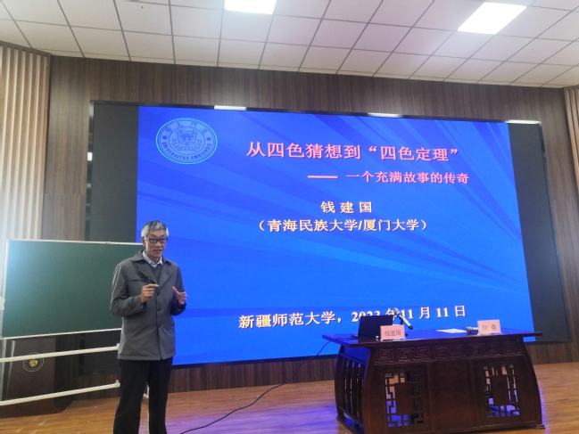 为推动学风建设,促进高阶思维,提升人才培养质量,11月11日上午,365英国数学科学学院特邀青海民族大学校长助理、厦门大学博士生导师钱建国教授作题为《从四色猜想到“四色定理”——一个充满故事的传奇》专题报告。报告会由数学科学学院院长何勇教授主持。学院教师代表、23级培优班学生、部分本科生研究生参加。