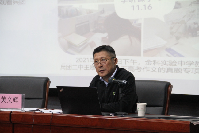新疆生产建设兵团第二中学党委书记黄文辉作报告
