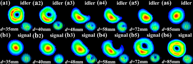 基于光学性能优良的KTiOAsO4(KTA)晶体,结合闲频光单谐振光参量振荡器的独特优势,搭建稳定紧凑的闲频光单谐振光参量振荡器;采用波长为1064nm的一阶涡旋光泵浦KTA光学涡旋参量振荡器,通过合理扩展腔长,控制泵浦光、信号光和闲频光之间的空间耦合因子,导致腔内一阶涡旋光与高斯光相干叠加,进而产生轨道角动量在0-1之间连续可调谐的非整数涡旋光的产生,为非整数涡旋光的产生提供了一种简单有效的方式。