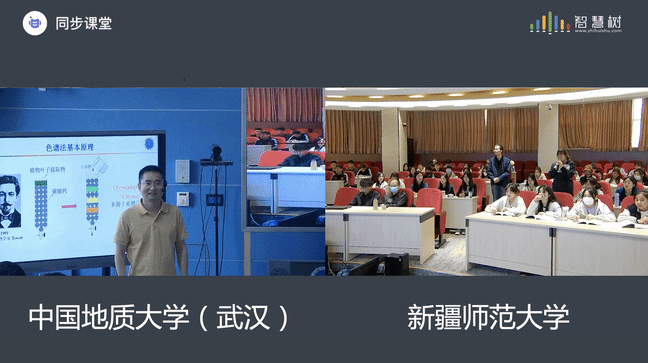 化学化工学院化学工程与工艺2021-5班和环境工程与工艺2021-6班的63名学生与中国地质大学(武汉)2020级材料化学专业学生借助“智慧树”在线同步课堂平台,进行了线上线下课程的同步学习、实时互动。在两次直播授课中,授课教师黄云杰为上好“慕课西行”课程,在与365英国仪器分析化学课程团队教师进行深入交流后,提前吃透两校教材内容,根据学情制定授课方案,在授课过程中利用多种信息技术手段,ppt的设计简明美观,嵌入多张仪器结构动图,从生活、生产中的案例导入课程,介绍仪器发展历史的同时,渗透课程思政元素,循循善诱,合理设置课堂提问环节,引导学生充分思考,充分调动学生积极性。授课期间,两校学生积极参与互动,踊跃发言,现场气氛十分活跃。课间还穿插了中国地质大学(武汉)同学的吉他弹唱,增进了两校学生的了解和交流。