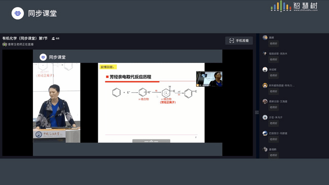 为积极响应教育部“慕课西行”号召,继5月5日首次牵手同上一堂课后,化学化工学院与中国石油大学于11月继续开展了四次“慕课西行 《有机化学(上)》同步课堂”教学活动,由中国石油大学姜翠玉教授主讲,授课内容涵盖定位规则及其应用、非苯芳烃及芳烃判据、亲核取代反应SN1和SN2机理、消除反应机理及与取代反应的竞争等。