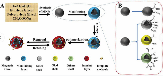 (A)磁性分子印迹聚合物的制备及(B)磁性材料的表面修饰_proc