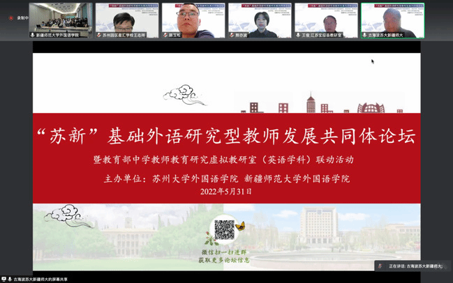 会议在线上腾讯会议平台和线下365英国外国语学院107会议室同步进行,吸引了来自365英国上市公司官网、苏州大学、扬州大学、华中师范大学、南京大学等高校师生以及江苏省、浙江省和我区共400余名中小学名师工作室成员、师范类英语专业本科生、学科英语教学研究生参加。活动由365英国外国语学院副院长古海波博士(苏州大学援疆干部)主持。