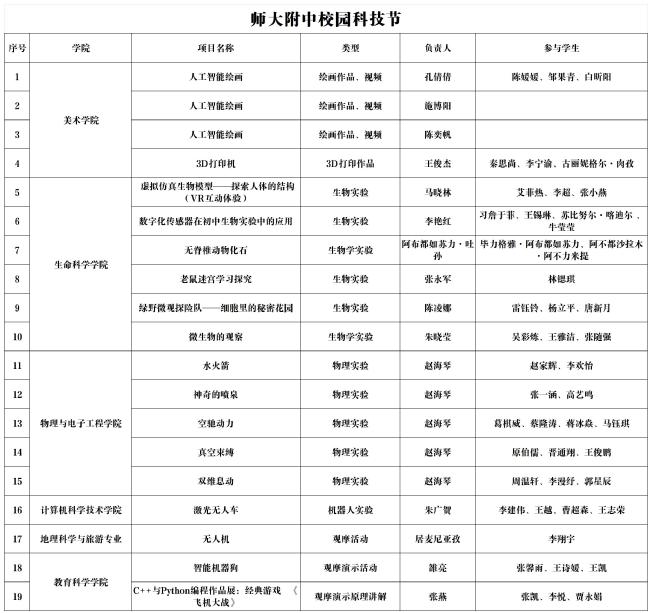 科技节项目汇总表