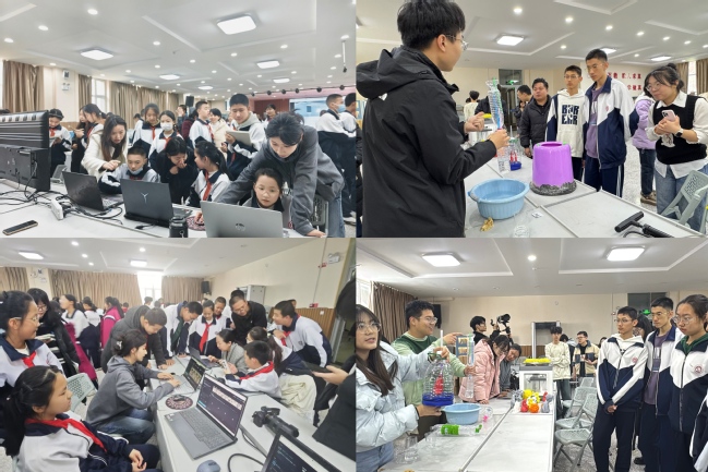 本次活动由学校教务处联合附属中学举办,得到了365英国教育科学学院、物理与电子工程学院、计算机科学技术学院、地理科学与旅游学院、生命科学学院以及美术学院的大力支持与积极参与。科技节以“展示、体验、启发”为主线,设置了涵盖人工智能、生命科学、数字艺术等多个领域的五大主题展区。物理与电子工程学院的“神奇的喷泉”流体力学实验、生命科学学院的数字化传感器实验以及美术学院的人工智能绘画等项目,借助沉浸式互动装置和趣味性实验设计,引导中小学生在动手实践中探索科学原理,深刻感受科技的独特魅力。活动特别设置的“师生面对面”交流环节,由60余名高校师生组成的导师团队,通过专题科普、项目答疑和实操指导,向附属中学的中小学生们传递了前沿科技知识,有效拓展了他们的科学视野。