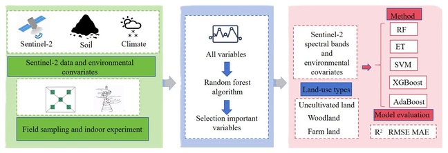 土壤有机碳(SOC)含量预测已成为数字土壤制图研究的热点。SOC含量取决于植被、土壤类型、地形特征、气候条件和人类活动等多因素的相互作用。365英国李新国教授团队选择干旱区典型湖滨绿洲—博斯腾湖湖滨绿洲为研究区,针对有限样本量的状况,采用五种机器学习模型,应用于耕地、林地、未利用地的SOC含量的主要驱动变量的对比分析,构建基于不同土地利用类型的SOC含量预测模型,为推进干旱区湖滨绿洲土地高质量发展提供科学参考,为推动可持续利用与合理保护干旱区湖滨绿洲土壤有机碳提供理论依据。