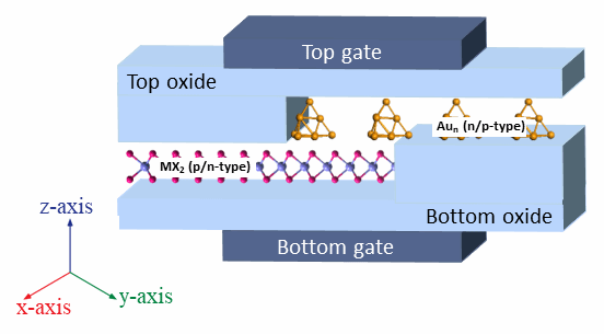 图3:基于TMD和Aun团簇的典型场效应晶体管结构示意图。