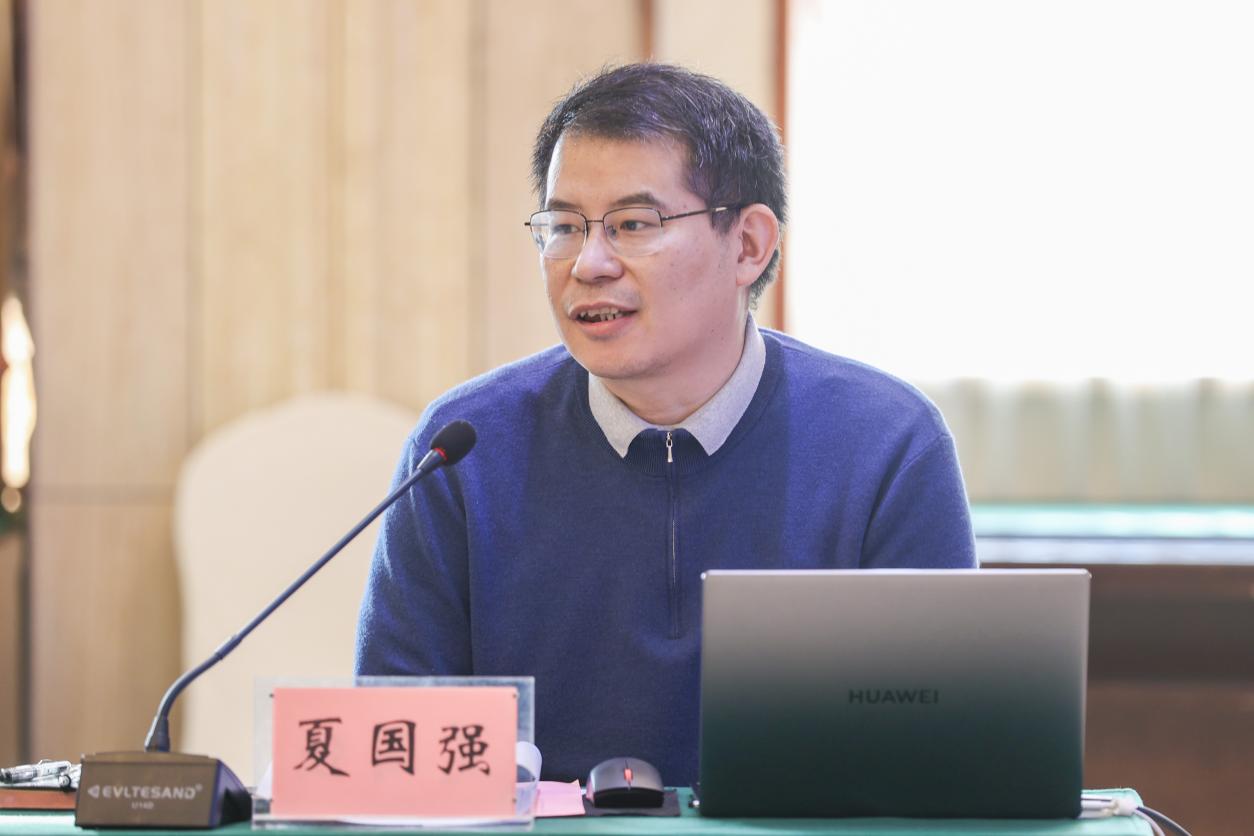 夏国强教授就该项目的选题背景与研究意义、研究现状与目标、研究内容与创新及研究分工与预期成果等方面做了阐述与汇报。夏国强教授指出,《汉书·律历志》是中华民族早期探索自然与社会和谐统一的大总结,其中涉及历法、音律、度量衡思想及古历运算,内涵丰富,曾被视为绝学,引发了历代学者的关注与研究,所形成的各时期释读文献,对于中华文明重本务实、追求统一、和谐发展等理念皆有反映,有着重要传承价值和意义。该项目拟在资料整理的基础之上,廓清历代《汉书·律历志》研究脉络,对各类文献的侧重点加以说明并作出叙录校订,藉此建构历代《汉书·律历志》研究的文献框架和思想路径图谱。