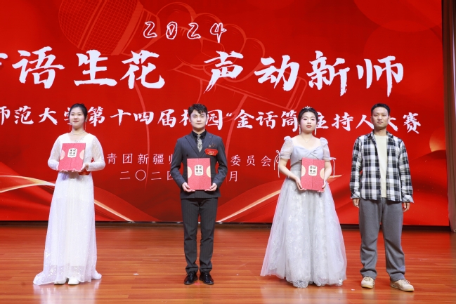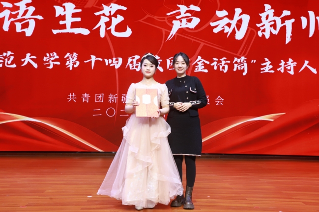 最终,经过激烈角逐,心理学院常佳荣荣获大赛“金话筒”主持人称号;音乐学院华静、孙典典获得“银话筒”主持人称号;中国语言文学学院高源、计算机科学技术学院路何尧昕、历史与社会学院王雅彤获得“铜话筒”主持人称号;外国语学院张舒、美术学院吴鑫悦、教育科学学院饶雅欣、商学院张文菡、历史与社会学院尚思宇获得“优秀主持人”称号;外国语学院张舒获得“最佳人气选手”。