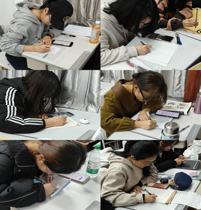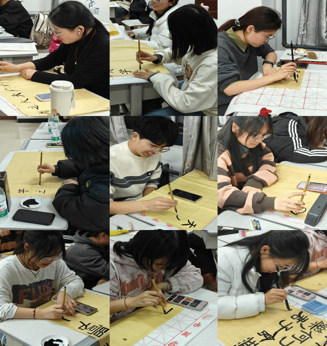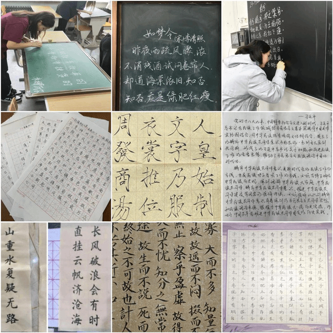 外国语学院通过板书练习,锻炼学生粉笔字书写功底,尤其是在模拟教师板书方面,不仅在书写上强调规范与工整,更在板书设计中融入了创意与视觉美感,增强了师范生板书技能,丰富了晚自习学习的互动性。物理与电子工程学院以抄写唐诗为主组织新生开展三笔字练习,班委会对学生准备及书写情况进行打分,有效促进了一练。