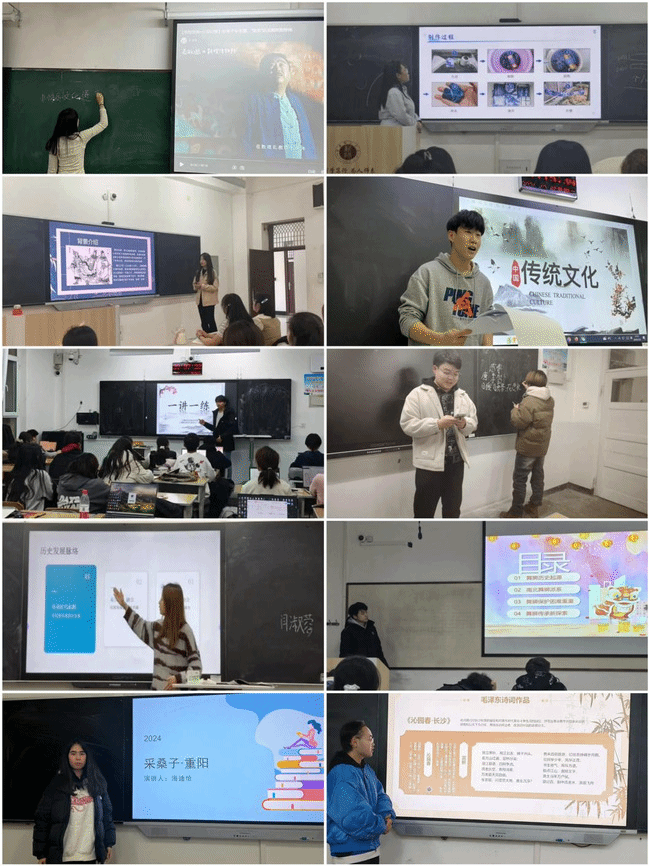 马克思主义学院“一讲”活动组织新生接力诵读了《习近平的七年知青岁月》,激发新生坚韧不拔、勇于担当的青春特质。生命科学学院围绕中华优秀传统文化,通过故事化导入、多媒体资源辅助,巧妙设置提问等方式,推进“一讲”活动。地理科学与旅游学院组织新生通过讲解中国历史文物和敦煌壁画,结合“一讲”活动提升学生口语表达能力的同时增强学生的历史认同。化学化工学院选取含有化学意象的古诗词,引导学生发现诗词中的化学元素,感受化学与文学的奇妙交融。