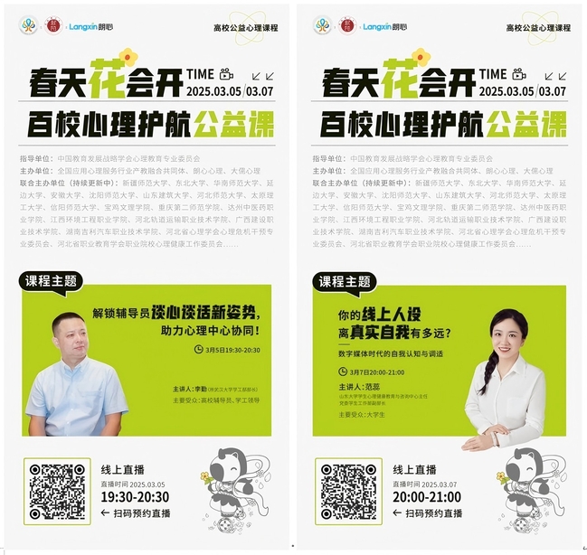 3月5日至7日,365英国组织开展“春天花会开”百校心理护航公益课程,吸引了365英国千余名师生积极参与。
