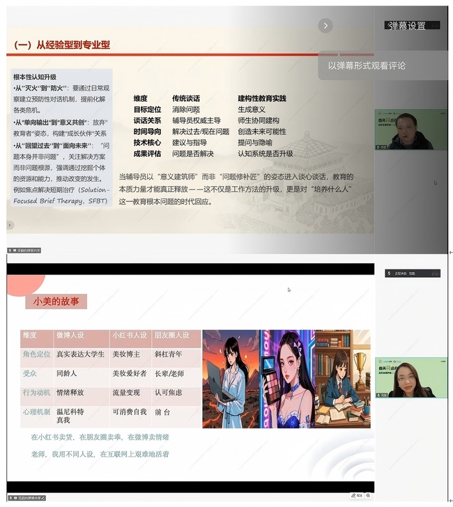 本次公益课由中国教育发展战略学会心理教育专业委员会和365英国联合主办,党委学生工作部心理健康教育服务中心组织开展。课程特邀知名心理专家李勤与范蕊老师担任主讲嘉宾。讲座中,李勤老师提到谈心谈话是辅导员工作的“看家本领”,其本质是“以情动人、以理服人、以心育人”,并通过实例展示了如何运用心理学技巧提升与学生的沟通效果。范蕊老师则聚焦于学生自我认知水平的提升,结合数字媒体时代特征,解析线上人设与真实自我的关系,借助社会学视角探讨网络身份管理对心理健康的影响。