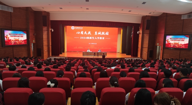 9月7日上午,学校在温泉校区昆仑讲堂举行“心有大我 至诚报国”新生入学教育专题讲座,两校区多媒体教室设分会场,全体 2024 级本科生、研究生新生参加学习。讲座由学生工作部(处)处长张进主持。
