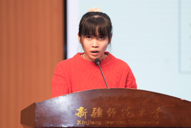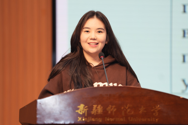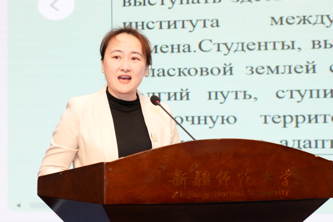 哈萨克斯坦留学生叶尔尕孜·娜孜作为新生代表发言