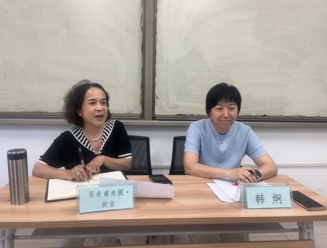 最后,买合甫来提·坎吉进行总结。她对留学生代表对中文和中华文化的学习热情表示了肯定,她表示学校、国际合作与交流处和各学院十分重视留学生的教育和发展,将尽最大努力解决留学生的实际问题,并对来华留学生提出了三点希冀:一是奖学金生都是优秀的留学生代表,希望大家好好学习,学好中文;二是建议大家学习之余多参加学校相关活动,学校也会组织各类文化实践活动,让留学生亲身体验中国文化;三是鼓励留学生互相鼓励、互相督促,做中外文化的交流使者,成为中国和留学生所在国深情厚谊的见证者和维护者。