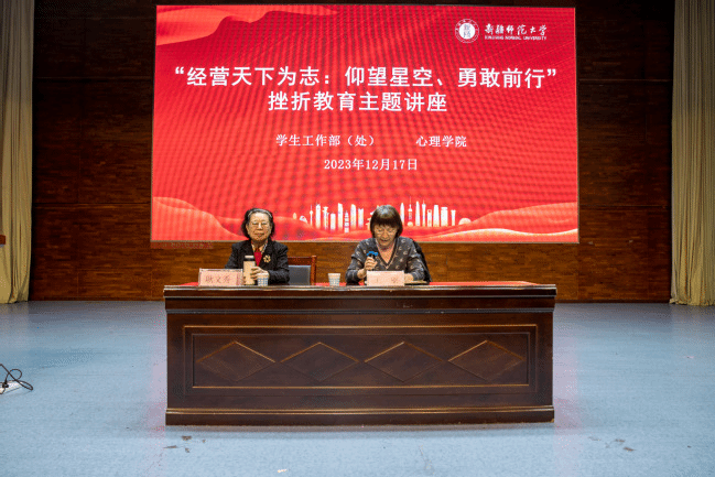 耿文秀教授以《经营天下为志:仰望星空、勇敢前行》为题,通过真实案例,阐述了挫折对个人成长的重要性。同时结合心理学家的故事,讲解了压力的正负效应,指出压力是人发展和成长的关键因素,还就心理成熟这一概念做了详细讲解,鼓励青年学子保持积极心态,勇敢面对生活中的挑战,从挫折中汲取力量。