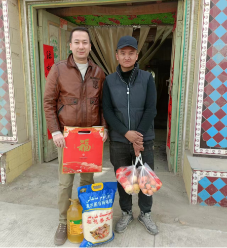 历史与社会学院党委副书记、纪委书记艾斯卡尔为学生送去过年对联和慰问品