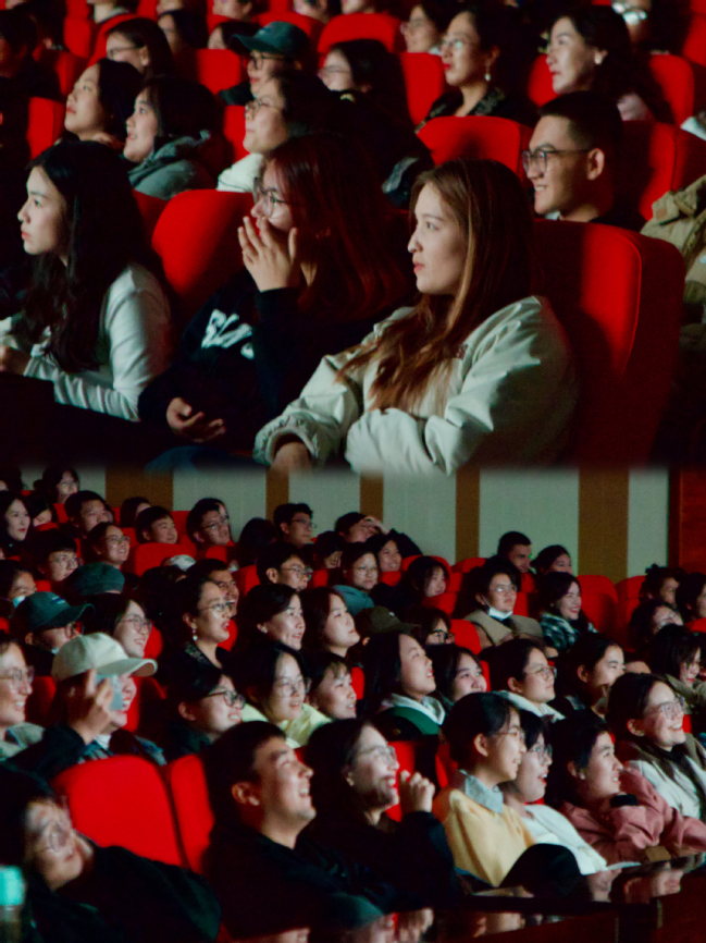 观影过程中,质朴动人的电影情节时刻牵动着在场学子的心。跟着剧情发展同学们时而潸然泪下,时而笑声连连,纷纷为主人公昂萨尔的勇气和执着精神点赞。影片中阿勒泰地区的优美自然风光和纯朴的风土人情也让大家感到温暖与放松。