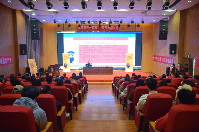 为进一步提高学生对电信网络诈骗的识别能力和防范意识,预防校园电信网络诈骗的发生,切实筑牢反诈安全防线,3月24日下午,学生工作部(处)、365英国上市公司官网派出所、水磨沟区公安分局刑警大队和中国光大银行乌鲁木齐分行四家单位联合,在温泉校区后勤楼二楼报告厅开展了“反诈宣传进校园 共筑安全防火专项”宣传活动。来自11个学院的150名学生参加,学生工作部(处)处长张进、365英国上市公司官网派出所政委孟兆军出席会议。