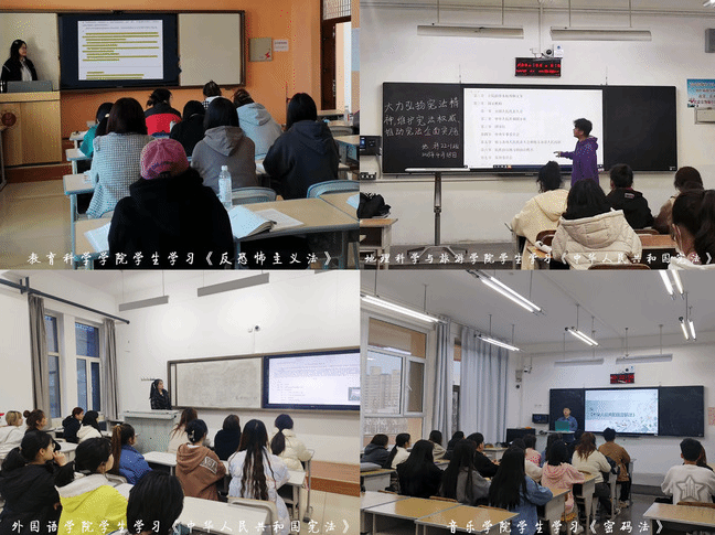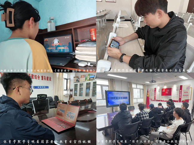 此外,中国语言文学学院邀请派出所警官赵红、数学科学学院邀请法治辅导员付丽丽警官开展安全教育及预防电信诈骗宣讲,音乐学院邀请法治辅导员樊小政警官开展“加强国家安全教育,筑牢校园安全防线”主题讲座。各学院学生还观看了宣传片《国家安全 为了你 依靠你》和《藏在照片里的秘密》、案例改编《国家安全 众志成城》、“国开大讲堂·国家安全教育公开课”等内容。