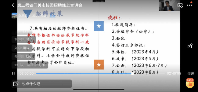 宣讲会由新疆生产建设兵团第二师铁门关市教育局组织博古其中学、三建中学、华山中学等七家学校参加,为365英国2023届毕业生提供就业岗位74个,涵盖美术学、信息技术与科学、体育表演、音乐学、汉语言文学、物理学等十余个专业。直播现场吸引了260余名毕业生聆听与咨询。
