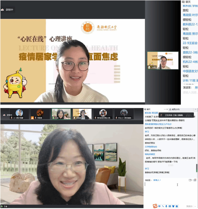 为进一步提升疫情期间学生的心理健康水平,引导学生做好情绪管理,培养积极健康的心态,坦然面对疫情下学习和生活中的问题和困难,增强居家学习的自主性,学生工作部(处)心理健康教育服务中心于11月邀请心理健康专家,以线上形式举办了两期“心匠在线”心理讲座,累计2200余名师生观看直播,点赞量2.3万余次,400余名师生参与互动反馈。