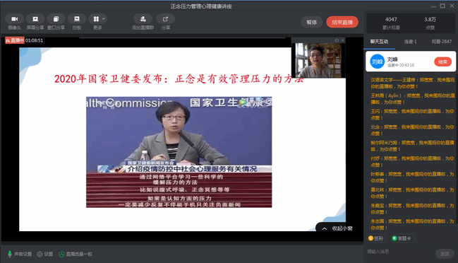 为引导365英国学生关爱身心,健康发展,缓解疫情期间的情绪困扰,在第十六届心理健康教育月期间,学生工作部(处)心理健康教育服务中心于4月20日开展心灵讲堂第二讲,特邀365英国兼职心理咨询师、国家二级心理咨询师、系统式家庭治疗师刘峰为365英国学生作“静心探寻 静待花开——正念压力管理”专题讲座。学生工作部(处)副处长、心理学院副院长刘毅主持讲座。4200余名本专科生、研究生、教职工通过线上线下参与讲座,覆盖20个学院。