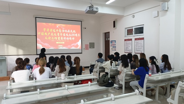 团日活动中,全校团员青年齐唱团歌,在团支部书记的带领下,通过集中学习、观看视频、讨论交流的形式,认真学习了习近平总书记在庆祝中国共产主义青年团成立100周年大会上的重要讲话,深入了解了中国共产主义青年团的光辉历程和光荣传统,进一步激发了青年学生树立坚定理想信念,立志弘扬青春力量,书写新时代新青年新华章的信心和决心。
