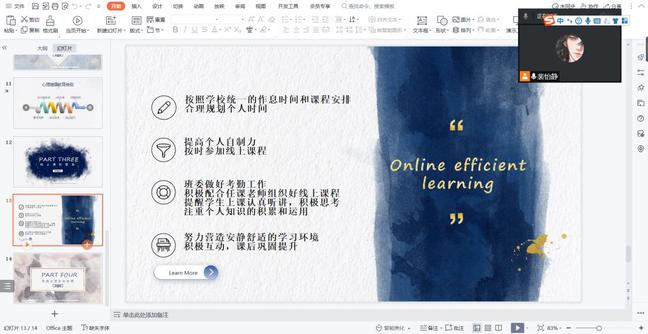 各学院还引导学生积极调试个人心理状态,以乐观的心态面对疫情和线上学习,对线上教学作出了纪律要求。新生班还开展了自我介绍、线上家长会答疑等互动活动。