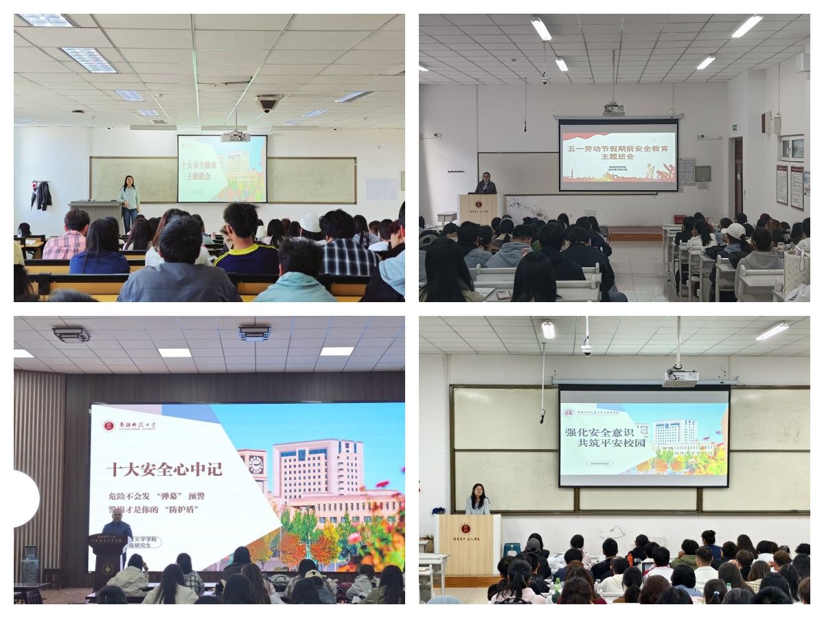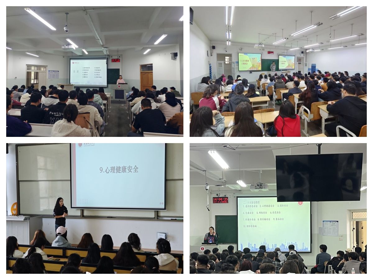 班会中,各学院结合安全教育主题班会内容,向学生普及有关意识形态安全、防溺水安全、交通安全、消防安全、网络安全、食品安全、防诈骗安全、社交安全、心理健康安全、预防传染病等十大安全教育知识,进一步引导学生筑牢总体国家安全观,树立安全防范意识,增强识别安全隐患、自我保护及应对突发情况的能力。