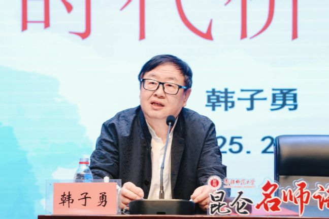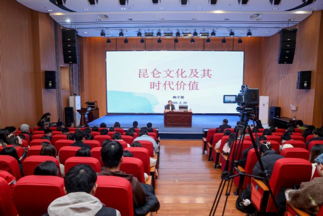 韩子勇研究员以《昆仑文化及其时代价值》为主题进行讲座,从昆仑文化的起源、发展、内涵、特征以及时代的价值与意义等多个角度对昆仑文化进行了深入解读,阐述了昆仑文化的源远流长及博大精深,并通过史料进一步说明了昆仑文化中蕴含的中华民族对天地、自然、生命的哲学思考和信仰信念。从古老的昆仑神话到现代的文化认同,昆仑文化始终贯穿着中华民族的精神追求和文化基因,见证了中华民族的历史变迁,承载了中华民族的记忆与梦想,讲座中为在场师生描绘出一幅昆仑文化的壮丽画卷。