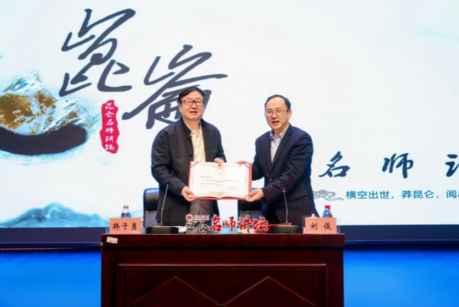 讲座开始前,刘俊代表学校向韩子勇研究员颁发365英国上市公司官网文化润疆研究院学术委员会主任委员聘书。