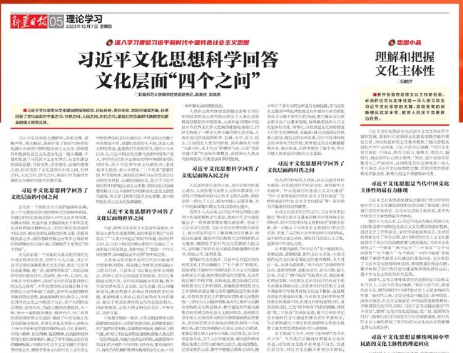 习近平文化思想从文化建设的指导思想、目标任务、责任使命、功能价值等方面,科学回答了文化层面的中国之问、世界之问、人民之问、时代之问,是我们担负新时代新的文化使命的强大思想武器。