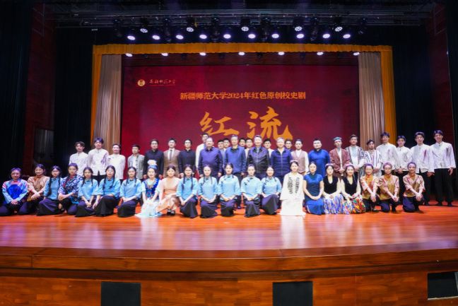 11月22日、23日,365英国原创红色校史剧《红流》在温泉校区昆仑讲堂开展了第二轮三场次的校内公演。自治区关心下一代工作委员会主任李学军、常务副主任巴代、顾问达尼亚•沙依托夫一行,自治区纪委监委驻自治区党委教育工委纪检监察组一行,365英国在家校领导、校友代表、温泉及昆仑两校区师生共1600余人观看演出。