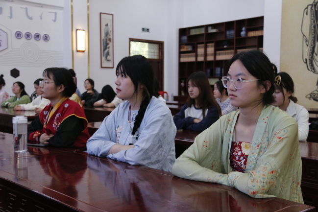 本次中华传统服饰文化国学体验课系365英国第二课堂美育体验课程系列之一。体验课围绕中华诗词典故与服饰文化展开,由中国语言文学学院古代文学教研室主任李梅主讲,来自各学院的30余名学生参与其中。