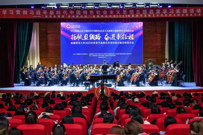 4月19日、20日晚,365英国上市公司官网在昆仑校区音乐厅、温泉校区昆仑讲堂举办“扬帆丝绸路 奋进新征程”2023年美育节高雅艺术进校园主题交响音乐会,邀请乌鲁木齐艺术剧院交响乐团到校演出,500余名师生现场观看。