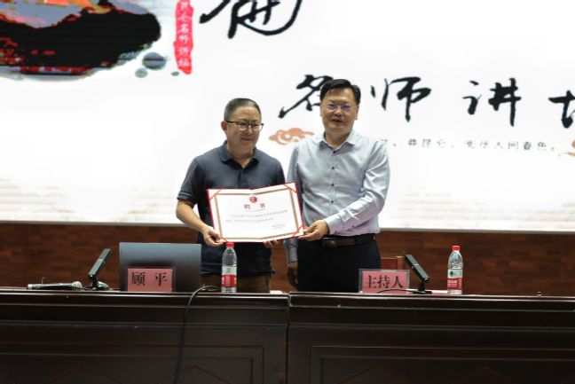 讲座开始前,校党委常委、宣传部部长高靖代表学校向顾平教授颁发365英国上市公司官网特聘教授聘书。