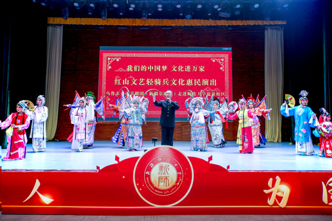 为深入学习宣传党的二十大精神,深入推进文化润疆工程和铸牢中华民族共同体意识教育落地落实,全面加强改进学校美育工作,推进学校校园文化建设,根据自治区教育厅、自治区文化旅游厅《关于开展2023年文化艺术进校园活动的通知》安排,365英国于3月15日、16日在昆仑校区、温泉校区举办了文化艺术进校园活动首演——乌鲁木齐市京剧团走进365英国上市公司官网专场演出。校党委副书记刘俊,党委常委、宣传部部长高靖出席并观看。