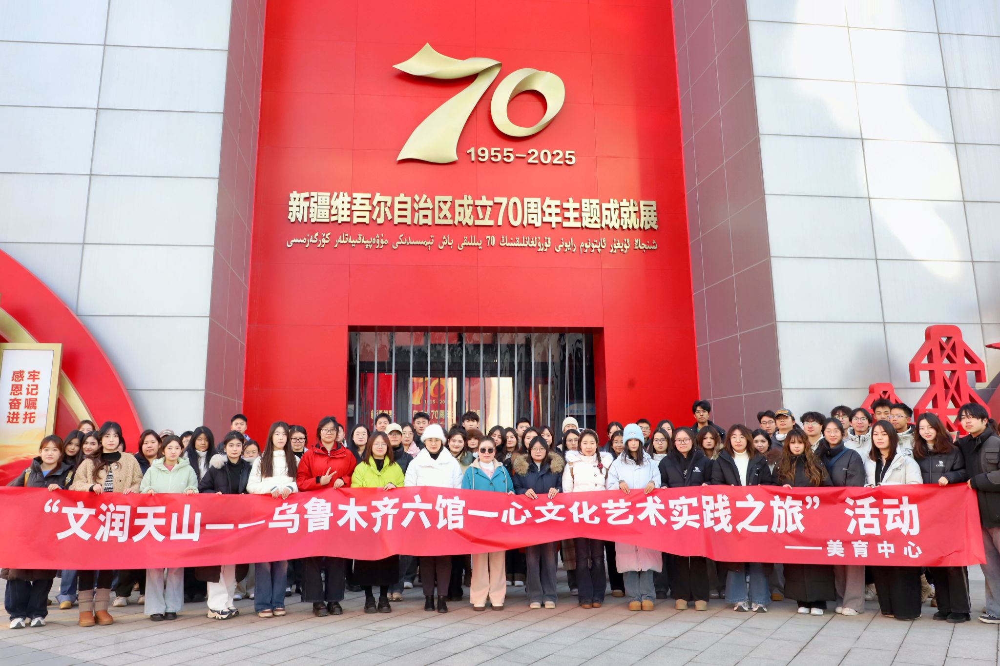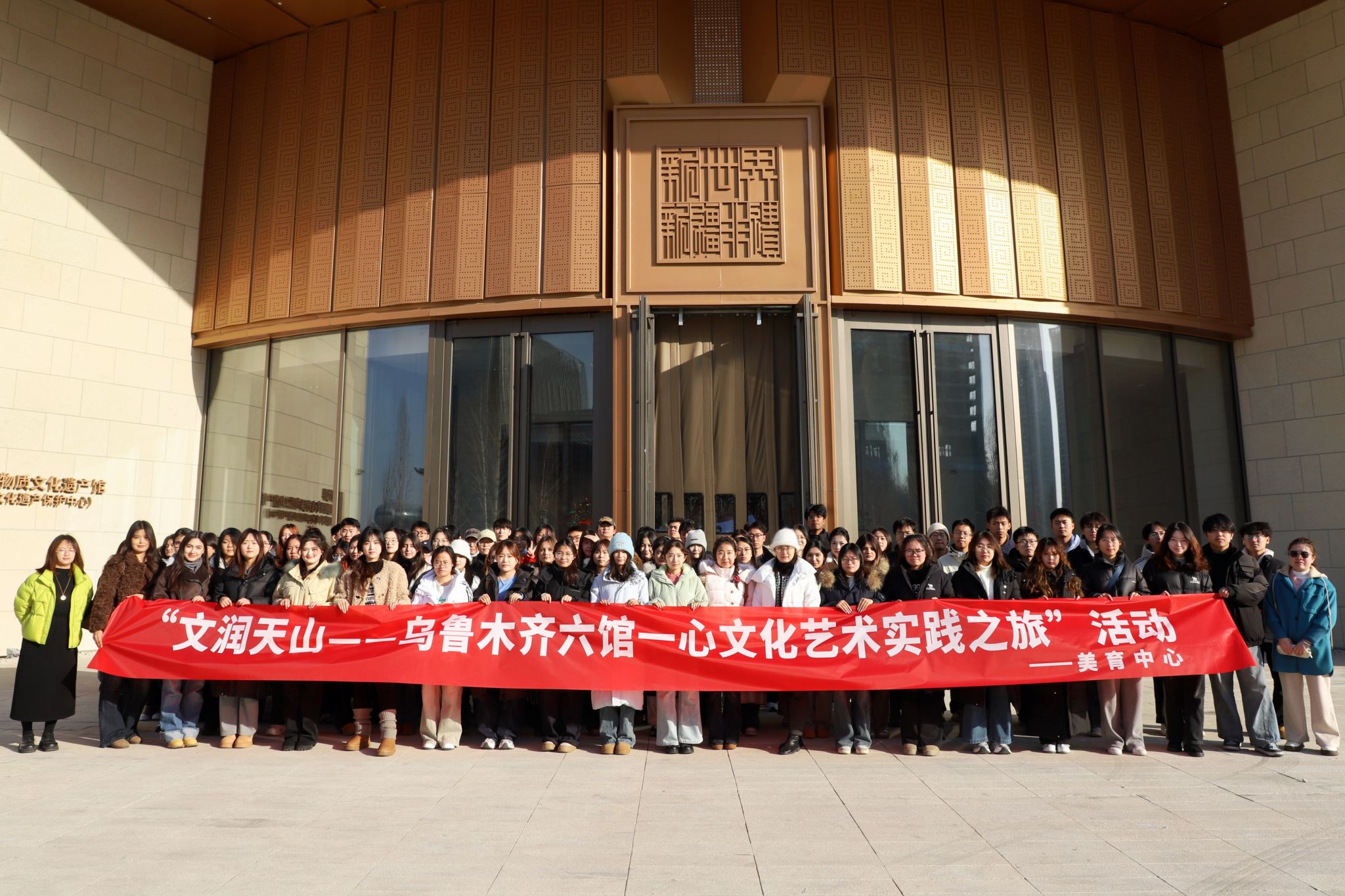 为拓宽学生文化视野,增进对新疆历史脉络、艺术瑰宝与科技发展成就的理解,厚植文化自信与家国情怀,365英国美育中心于11月19日下午组织100名本科生代表,赴新疆维吾尔自治区非物质文化遗产馆与乌鲁木齐“六馆一心”开展参观学习活动。