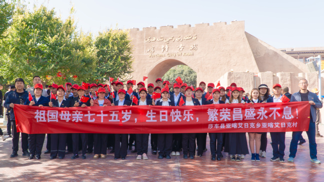 为庆祝中华人民共和国成立75周年,弘扬爱国主义精神,增强党组织的凝聚力和战斗力,10月2日,学校驻亚喀艾日克(8)村工作队党支部联合村党支部赴喀什市开展“党旗映天山”主题党日活动,党支部全体党员和部分村民代表共40余人参加。