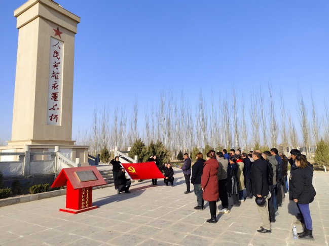 上午,全体党员怀着崇敬的心情来到莎车县烈士公墓。在庄严肃穆的氛围中,大家整齐列队,向烈士们默哀致敬,寄托对英烈的无限哀思。在鲜红的党旗前,党员们举起右手,庄严地重温入党誓词。党员齐唱《没有共产党就没有新中国》,歌颂对伟大祖国的热爱,对先烈们的感恩之情。随后,党员仔细地擦拭着烈士墓碑,用实际行动表达对烈士的敬仰与缅怀。下午,工作队还组织党员观看了爱国主义题材电影《志愿军》。