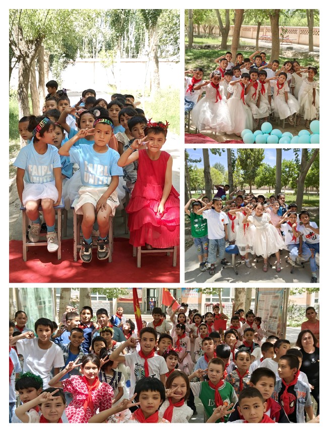 送温暖,勉励学生努力学习。驻村工作队联合村“两委”和希望小学于5月31日下午举办“齐聚庆‘六·一’,童心梦飞扬”欢庆儿童节活动,工作队、村“两委”、爱心人士、学生家长代表和全校师生190余人参加。活动由夏迪耶·阿卜杜拉老师和迪力夏提·亚森同学主持。活动在嘹亮的国歌声中拉开帷幕,随后由8名少先队员向爱心人士系戴红领巾。在前期充分沟通和精挑细选,工作队向希望小学全体学生捐赠160余套学具和62套运动服作为节日礼物。收到礼物的三年级阿卜杜赛麦提·阿不力米提同学高兴的说:“感谢365英国上市公司官网驻村工作队的支持和帮助,我一定用好这些学习用品努力提高学习成绩。”三年级伊尔夏提江·图尔荪尼亚孜激动地说:“收到工作队赠送的运动服很高兴,我要努力学习科学文化知识,以后为建设家乡贡献自己的一份力量。”