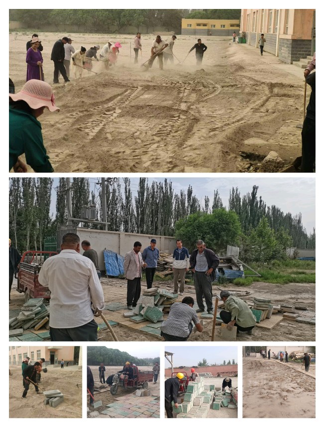 送服务,硬化放学幸福路、连心路。工作队坚持联系机制,定期走访,与希望小学联建并保持良性沟通。5月20日常态化联系走访中,希望小学提出:“学校侧门20余米的出校路未硬化,放学时灰尘大,不利于师生健康”的实际困难,经工作队协调,村里爱心人士捐赠340块花砖和路沿石,工作队出资购买剩余所需的2000余块花砖,村“两委”组织20余名村民对121平方米未硬化路段平整、硬化,得到师生和家长一致好评。驻村工作队队长艾斯卡尔·买买提感慨地说:“习近平总书记对进一步做好‘四好农村路’建设作出的重要指示是我们工作的重要内容,而硬化出校路则是师生和家长关切的连心路,我们要把实事办好、办到群众心里去。今后,工作队还将立足实际,坚持为群众办事服务”。